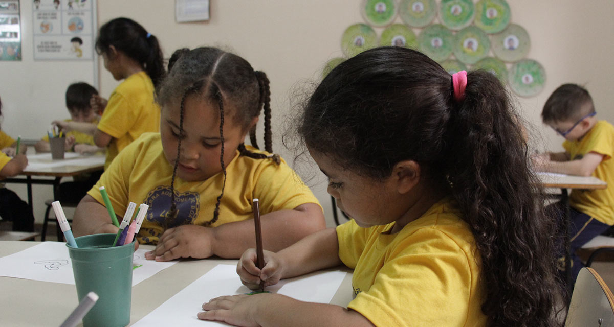 1 kit pedagógico doado = 1 criança na sala de aula