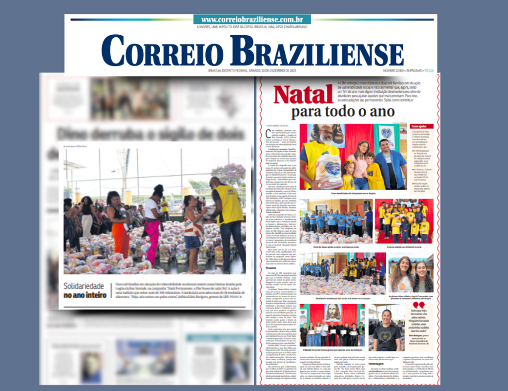 E essa mobilização solidária foi destaque na edição deste sábado, 20, do Correio Braziliense, um dos mais tradicionais e influentes veículos de comunicação do país, que, ao divulgar e apoiar a Campanha de Natal, mobilizou as pessoas através de seu site a fazerem parte dessa corrente do Bem.